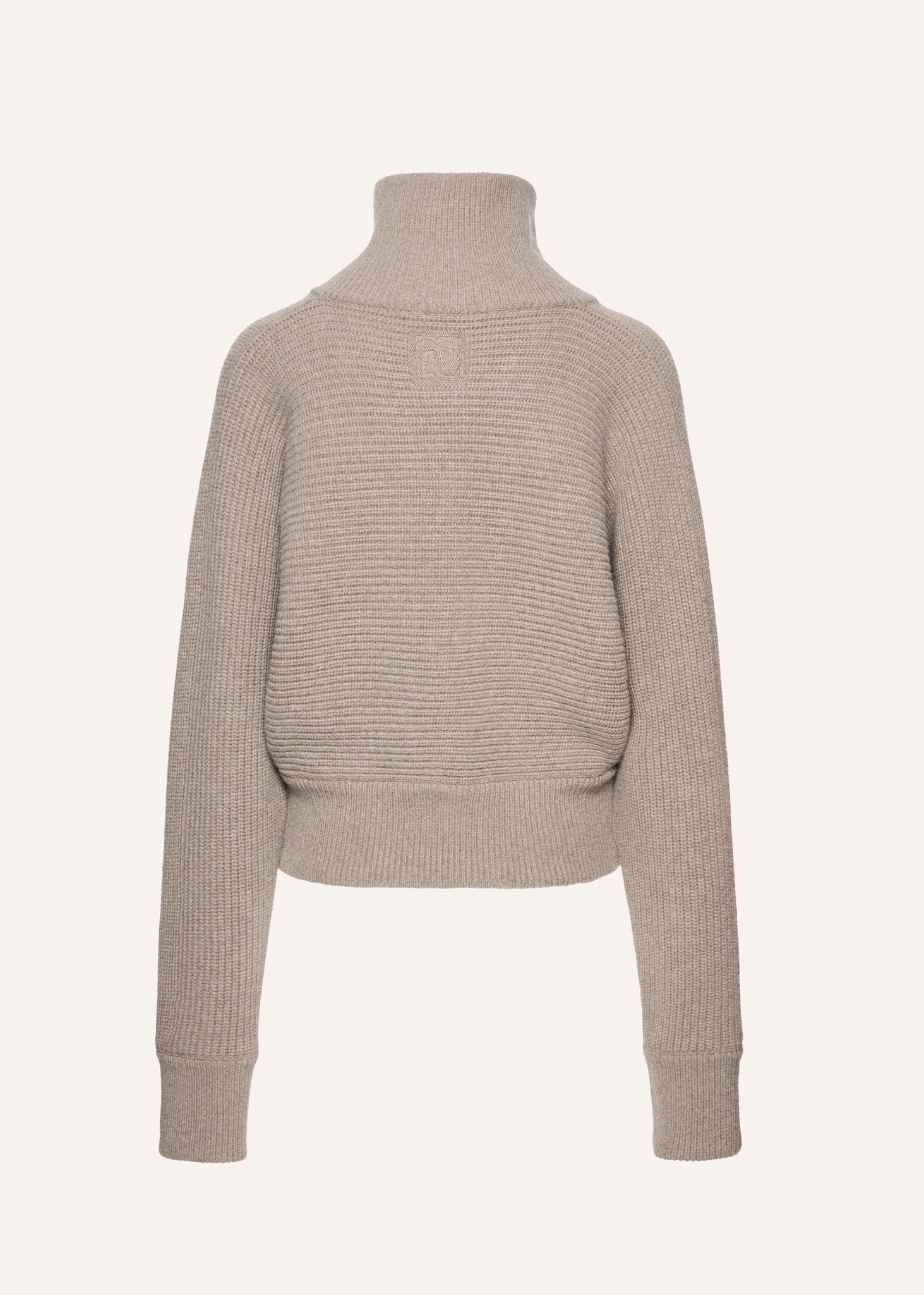 A modern classic crafted from a luxurious wool and cashmere blend, this funnel neck sweater offers both softness and structure. Designed with a half-placket button closure and ribbed texture throughout, the silhouette has a boxy fit and exaggerated high neck. The tonal embroidered logo at the back adds a subtle signature detail.
