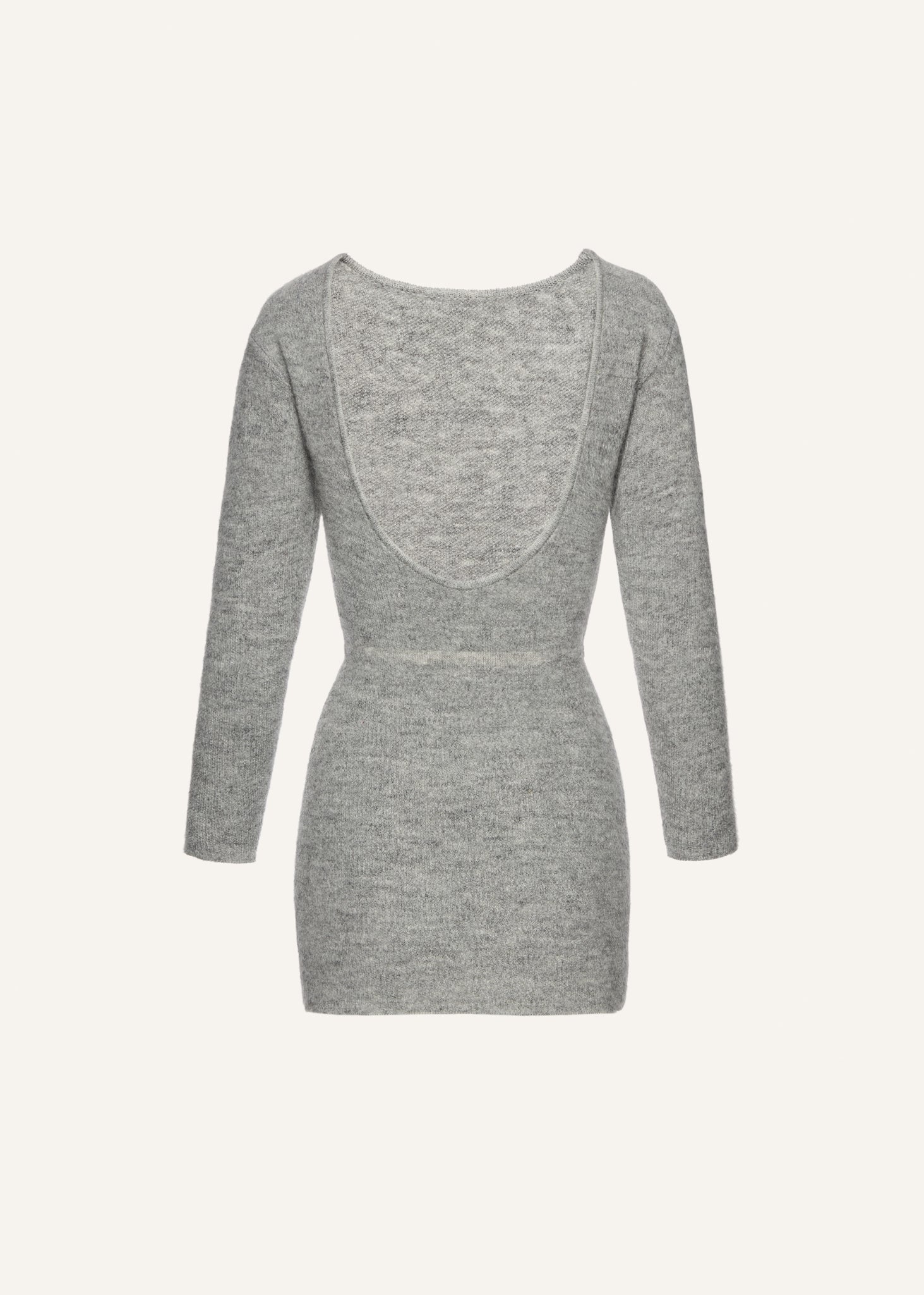 Fitted mini dress in a soft mohair blend. Designed with a classic round neckline at the front and a deep scoop back that adds an element of allure. Features long sleeves and a subtly cinched waist for a flattering silhouette.