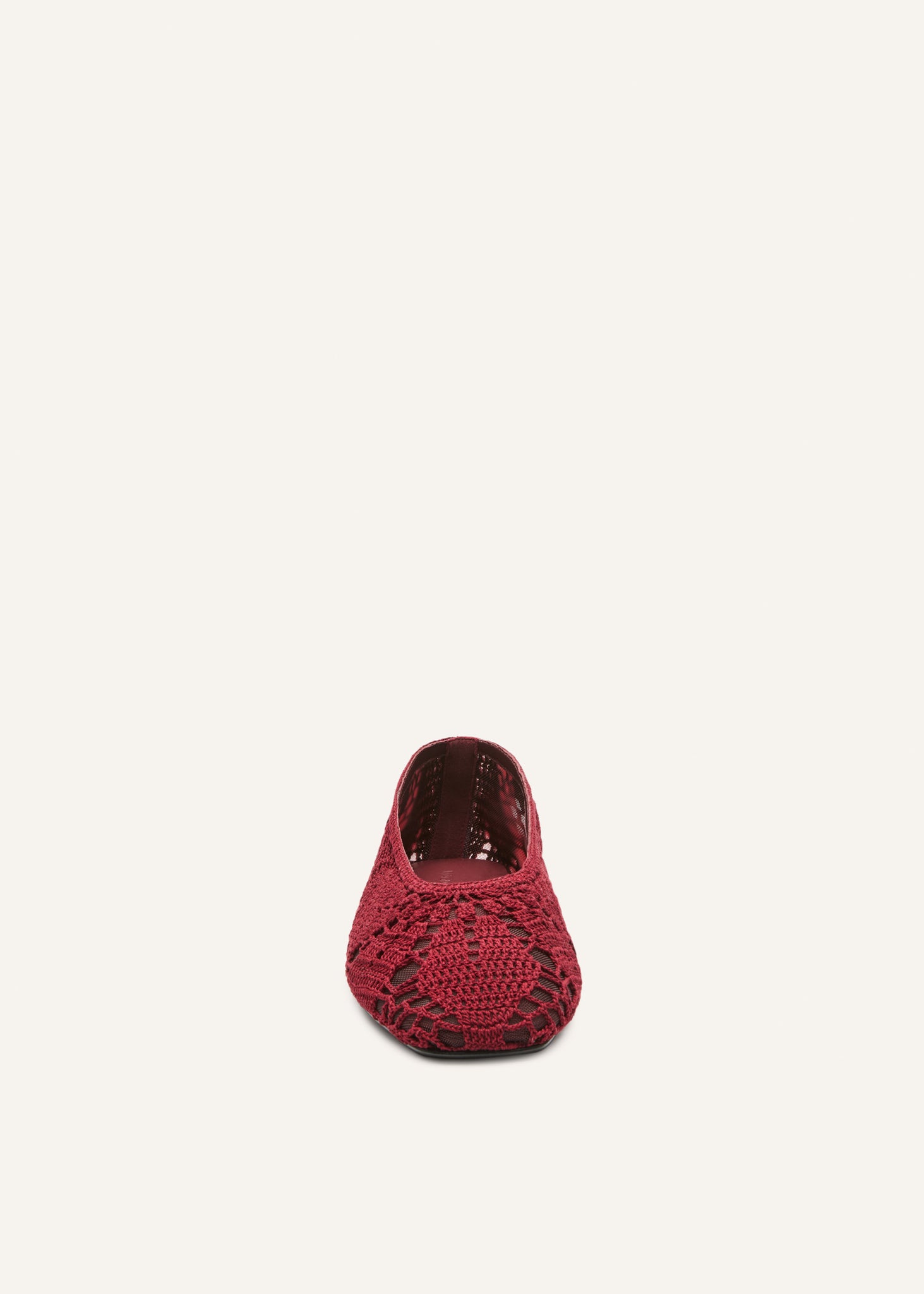 A modern round-toe ballet flat offers effortlessly chic styling with its unique sculptural shape, crafted in Italy from a leather sole and insole and a crochet upper.