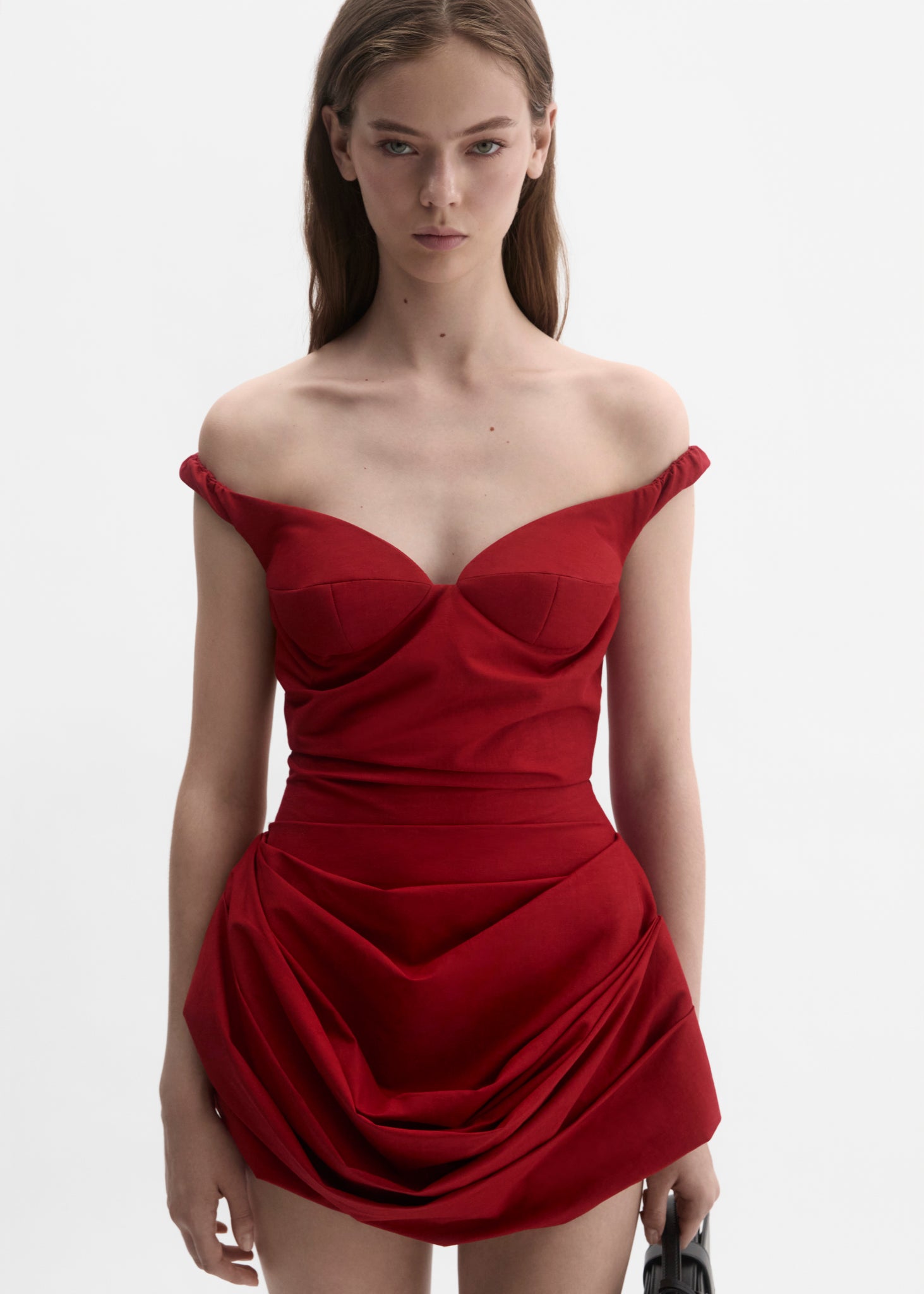 Off-shoulder bustier dress in red