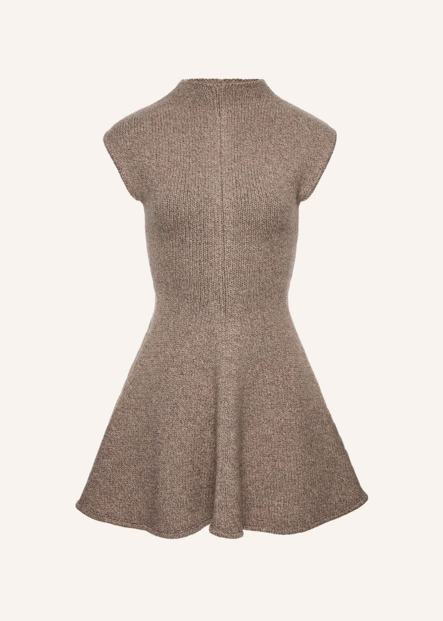 A marled knitwear dress with a flared skater skirt and sleeveless finish, creating a feminine silhouette.