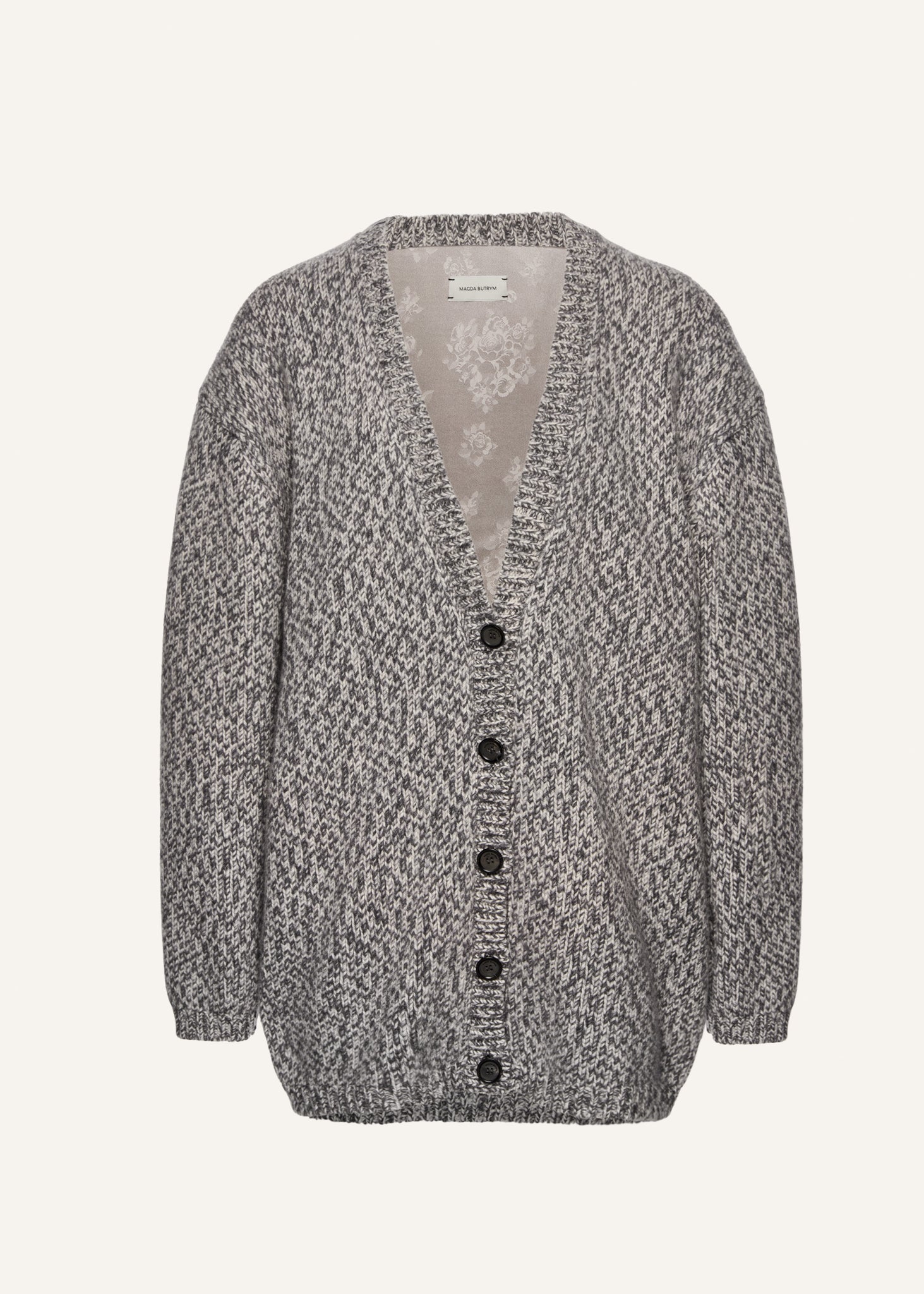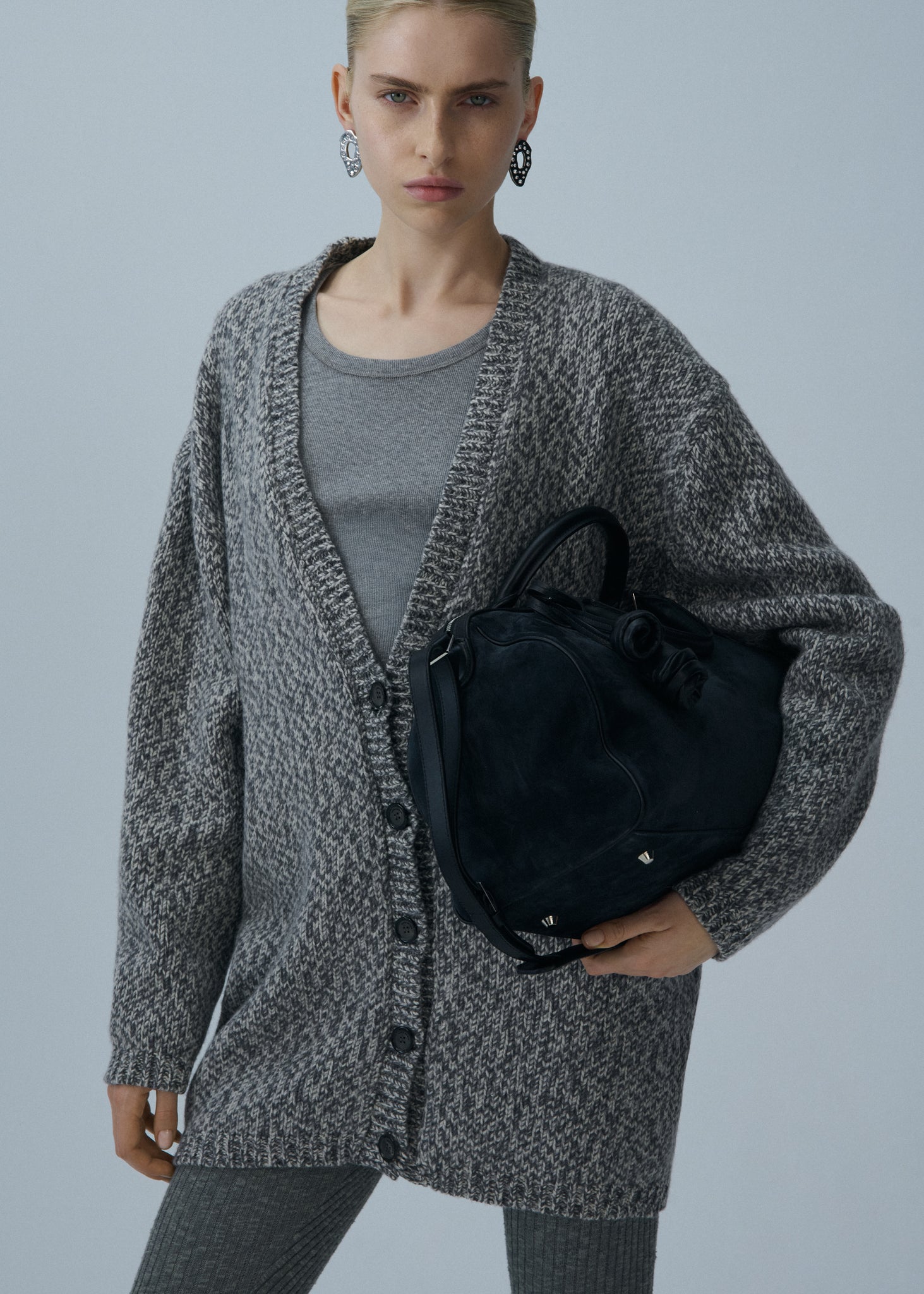 A chunky knit, oversized boyfriend cardigan that is marled throughout.