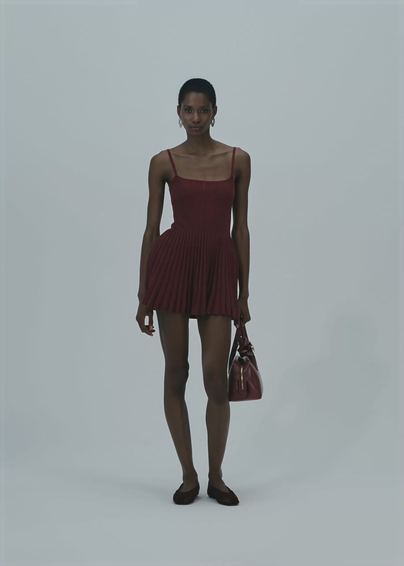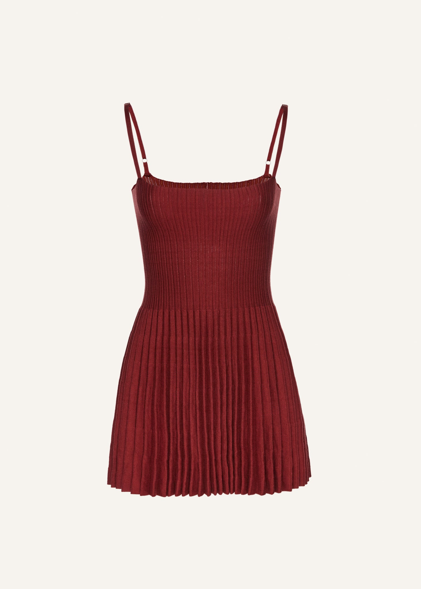A cotton knitwear skater dress with an accordion skirt and a square neckline.