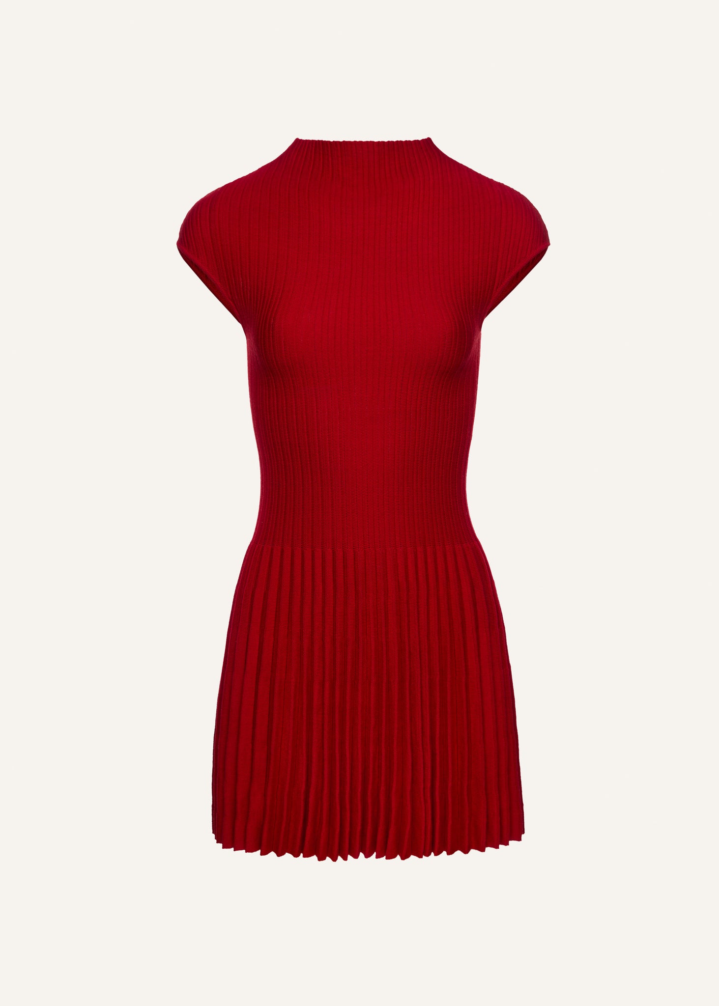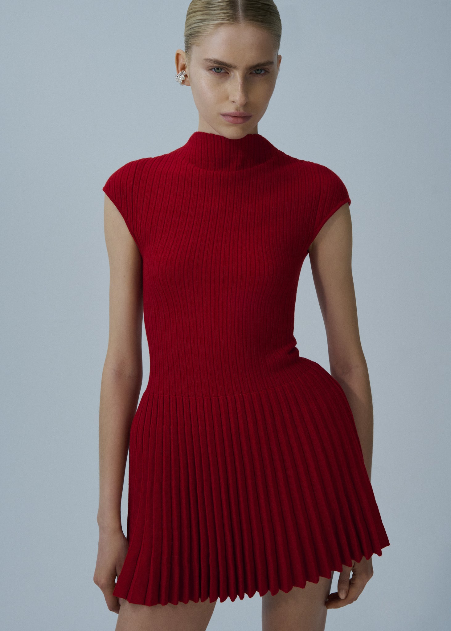 A cotton knitwear skater dress with an accordion skirt and a sleeveless high-neck.