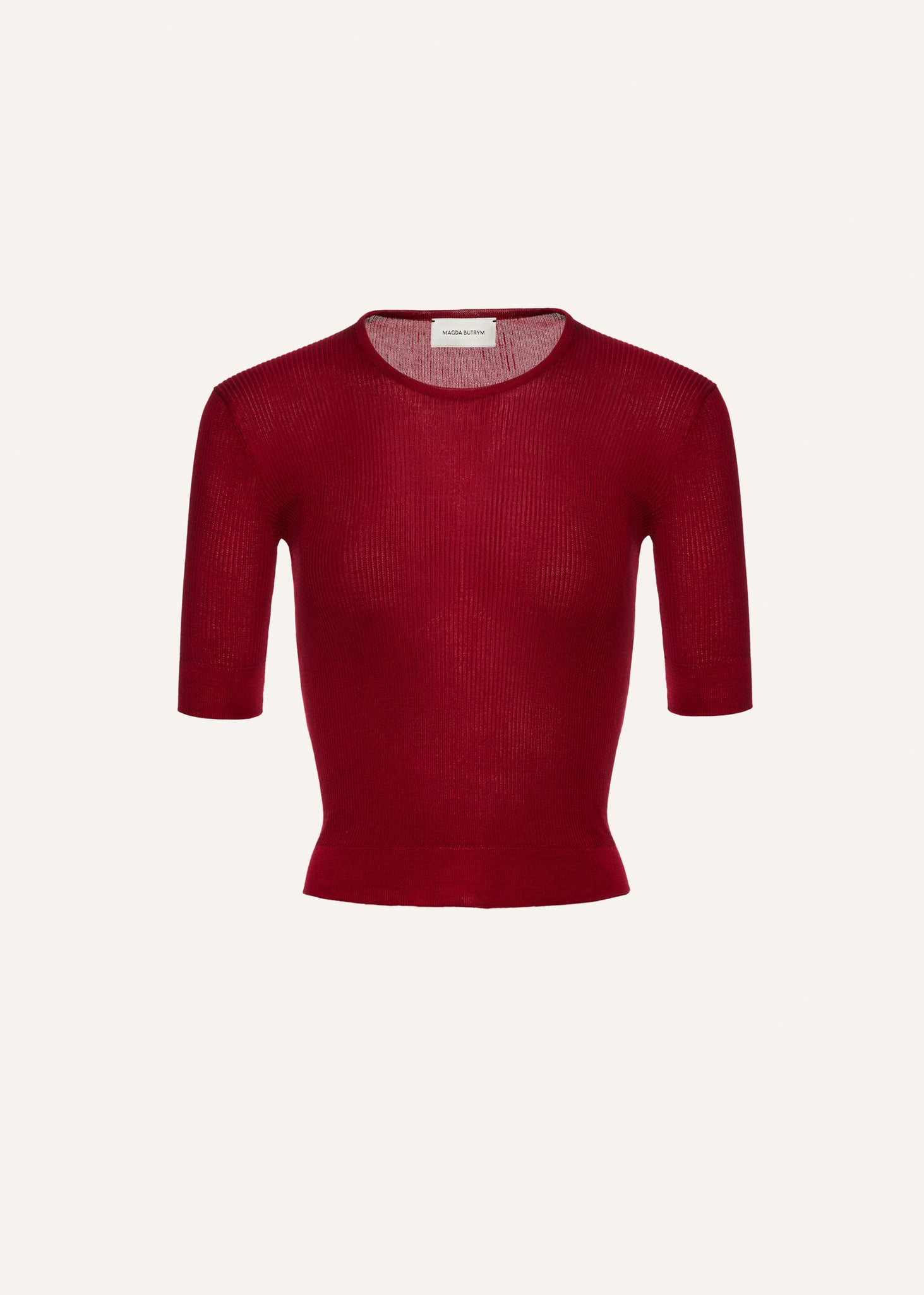Short sleeve silk knit top in bordeaux