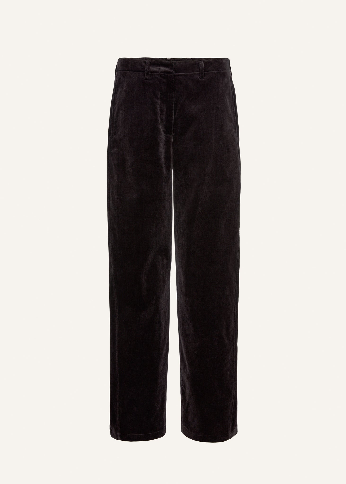 Casual corduroy trousers with a low waist and wide-leg fit.