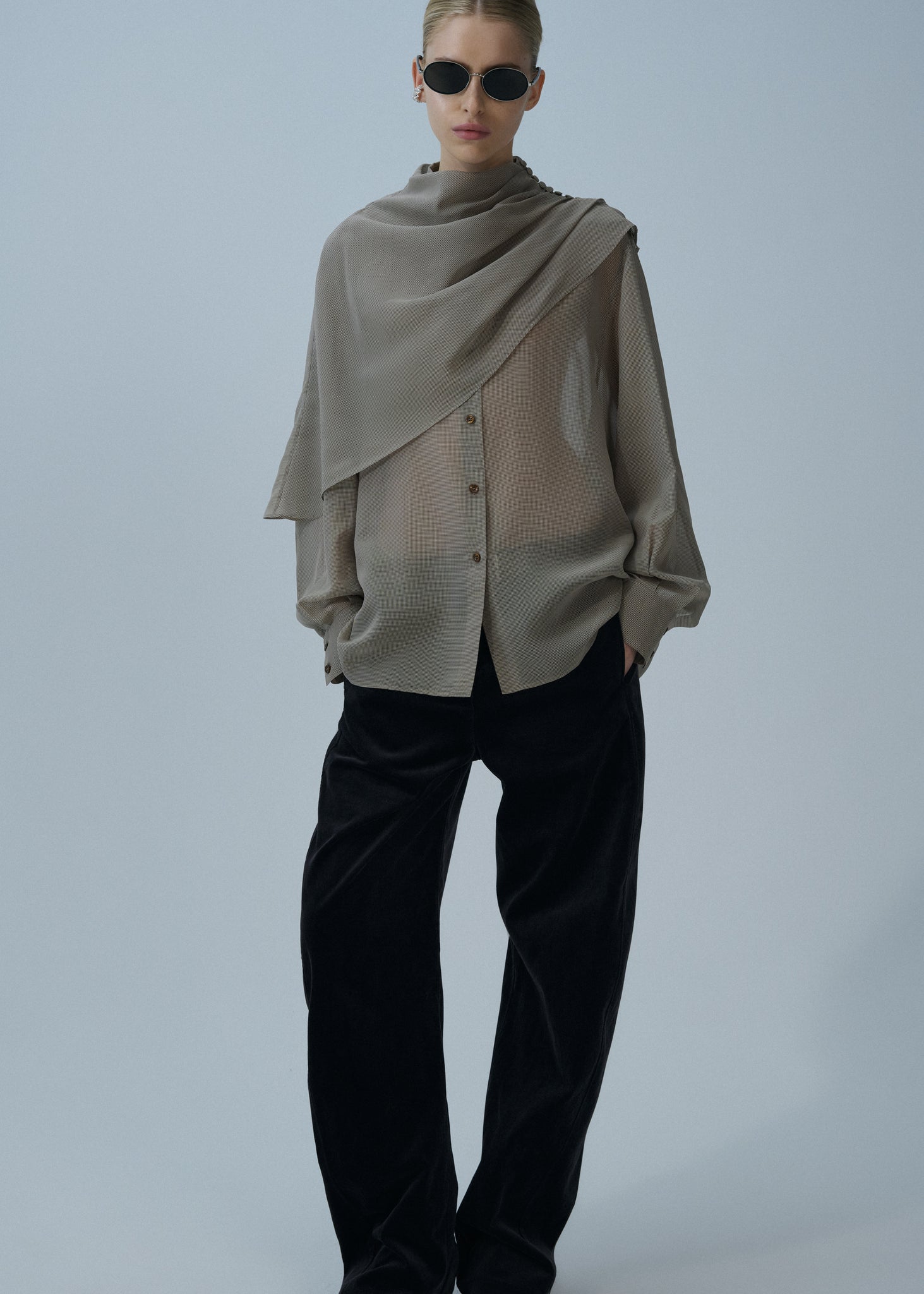 A classic oversized button down collared shirt, made from silk.