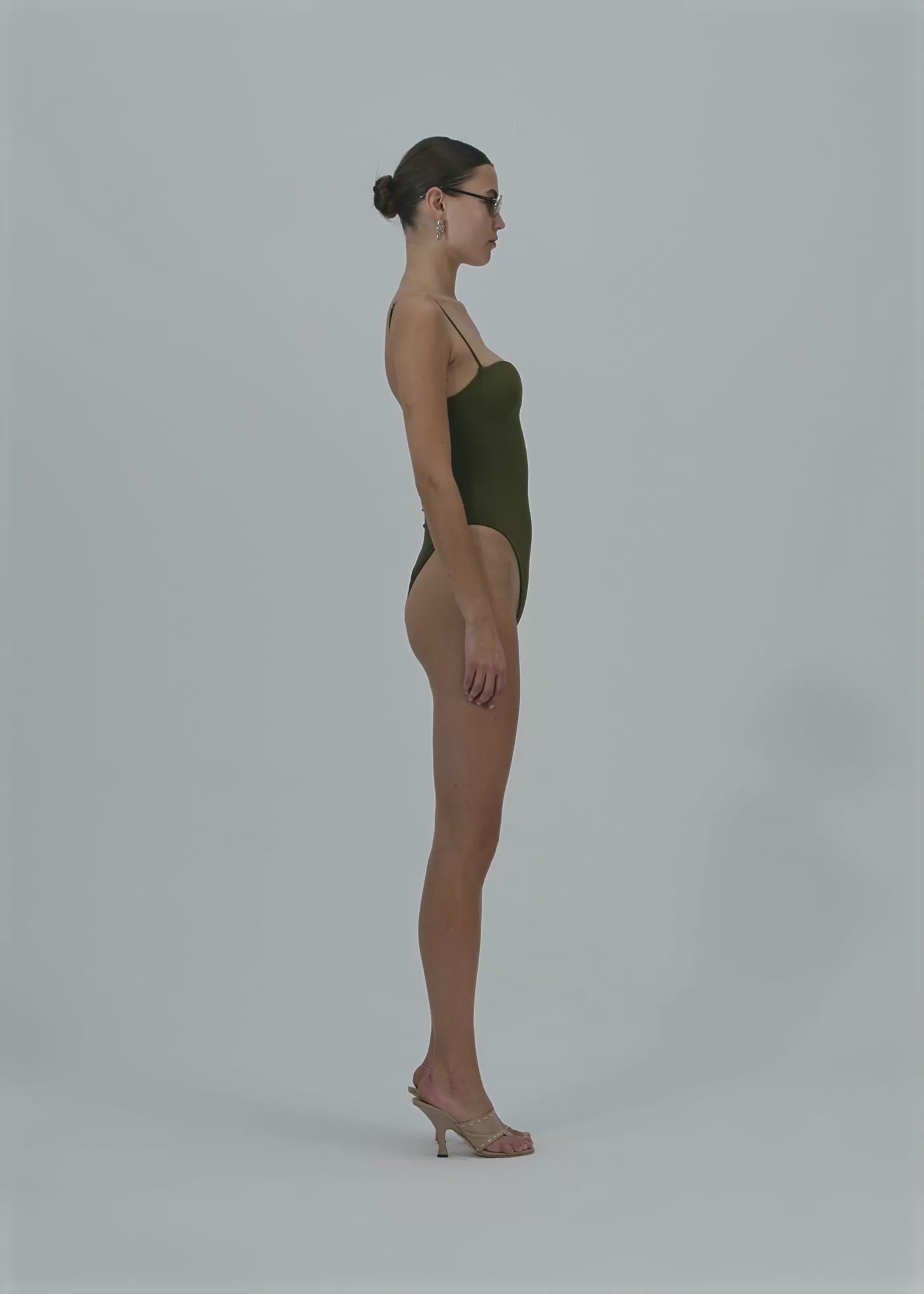 This swimsuit, part of Magda's very first swimwear collection, is now presented in dark green. Featuring the signature retro bustier silhouette, it embodies the brand's iconic aesthetic.