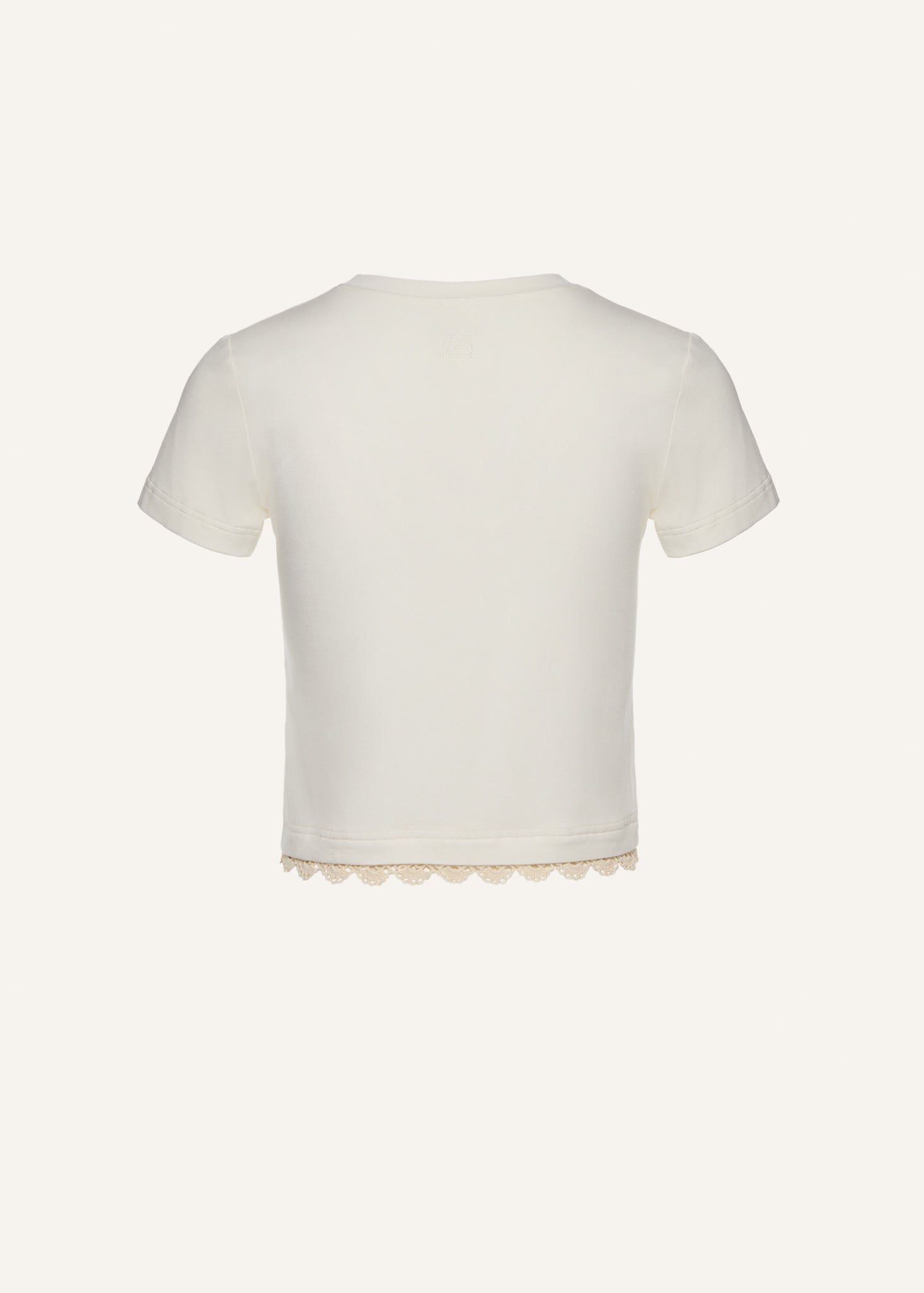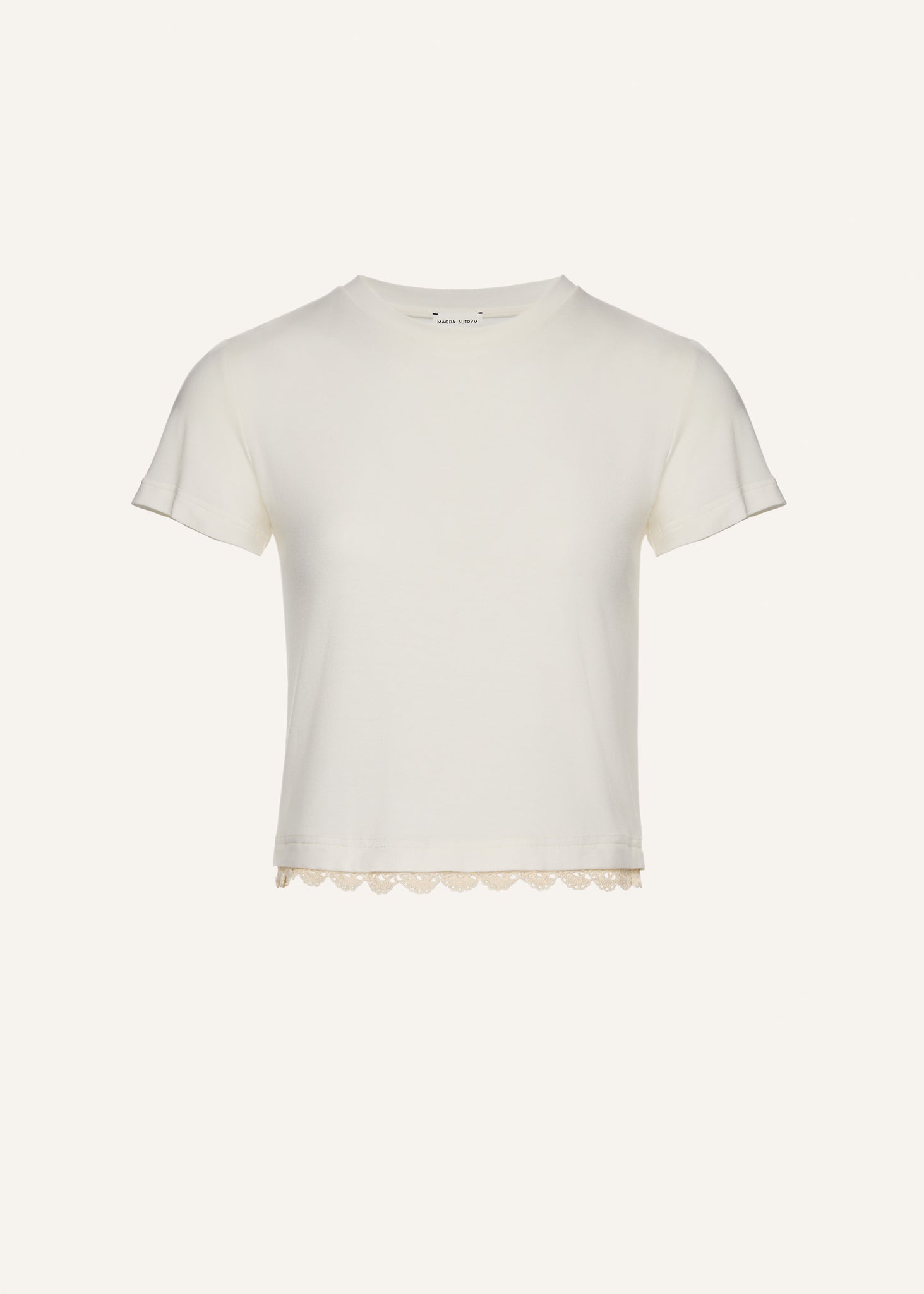This classic tshirt features Magda Butrym's signature handmade lace crochet detailing at the hem.
