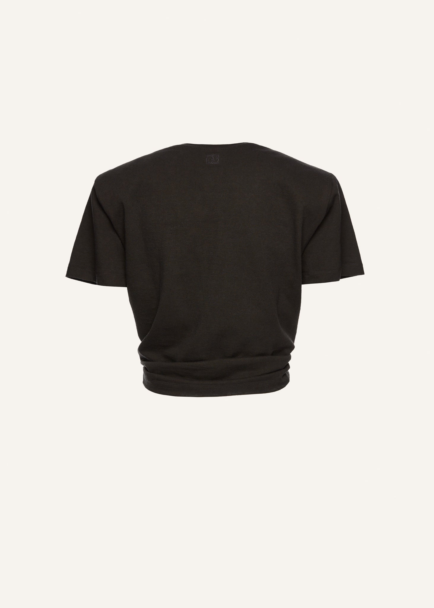 Magda's classic ribbed t-shirt features a knotted detail at the front and detachable shoulder pads. Made from cotton and silk.