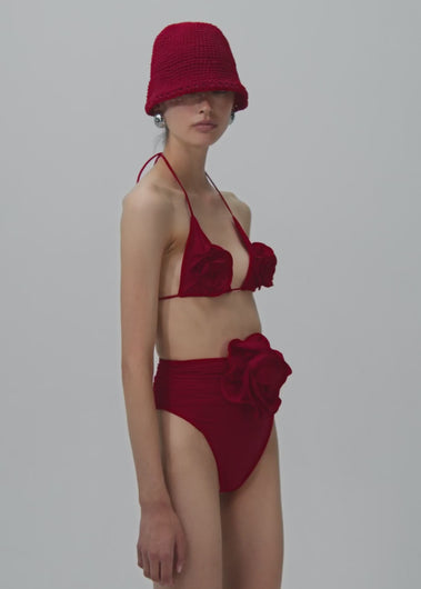 • Load and play video in Gallery viewer, Handmade wide brim crochet bucket hat in red