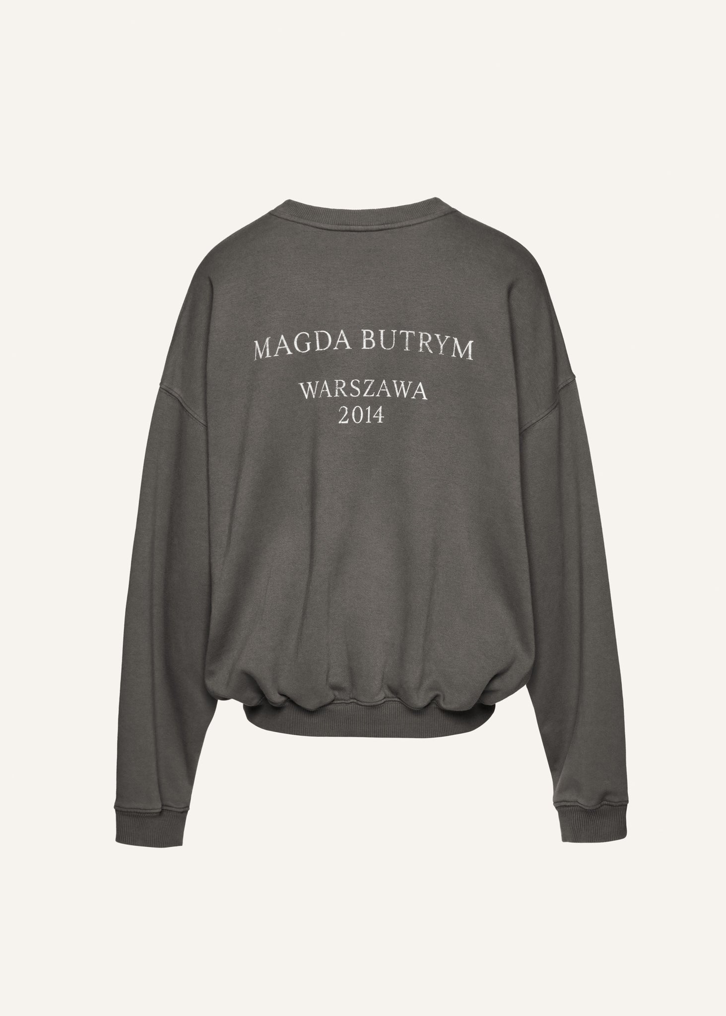 A classic crewneck sweatshirt designed in celebration of Magda Butrym's 10th anniversary. The relaxed silhouette features dropped shoulders and ribbed cuffs and hem. The back showcases brand's name and founding year 2014 Warszawa