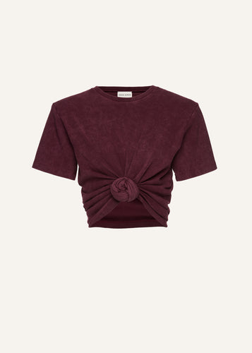Knotted ribbed t-shirt in vintage burgundy