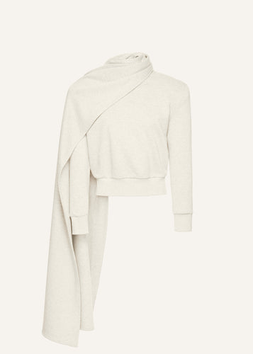 Draped scarf sweatshirt in cream