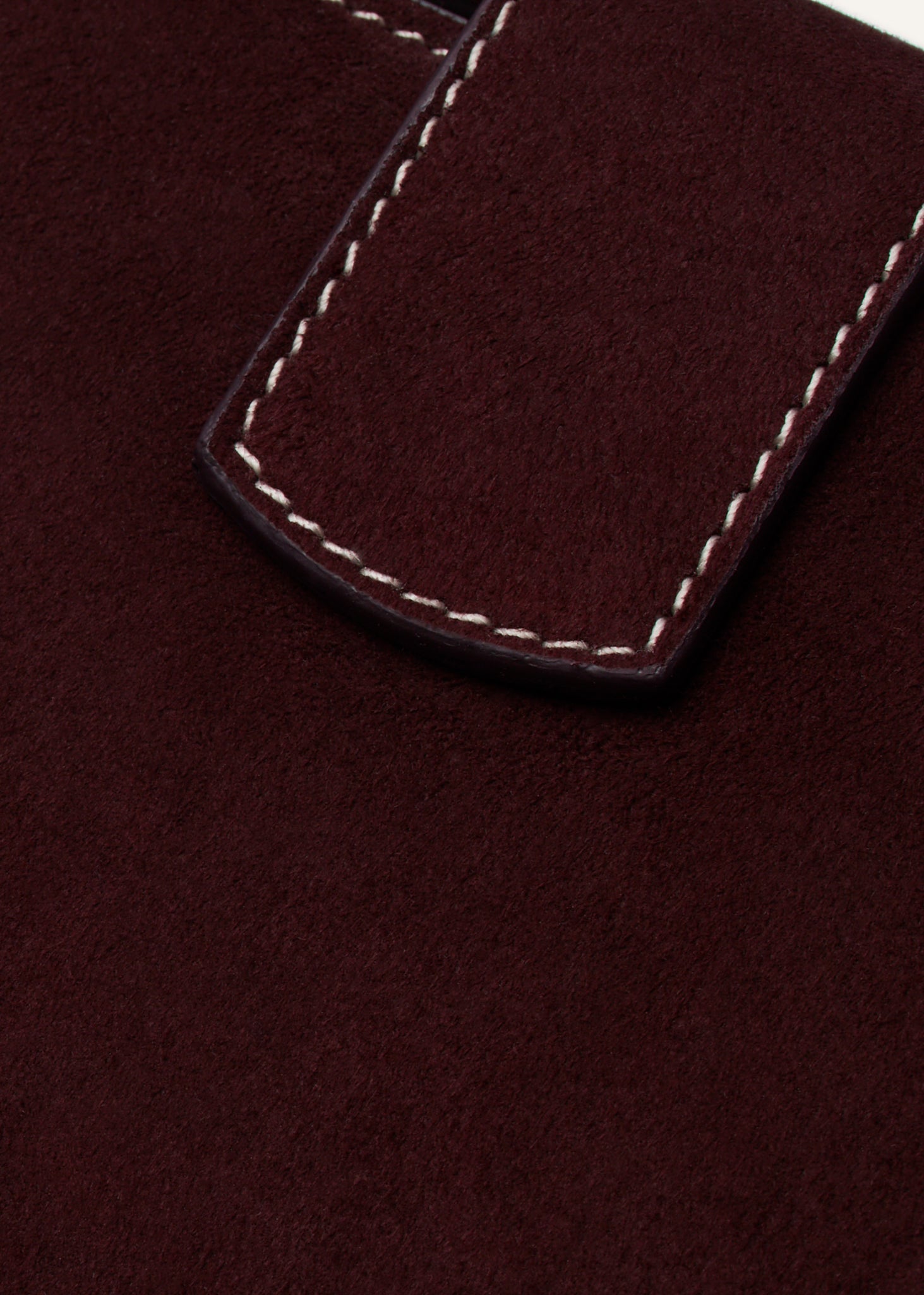 Magda's Apolonia bag is a chic pochette with a box design and simple strap, characterized by its timeless and minimal design. On the inside of the bag is a very special hand painted rose. The bag is made recognizably Magda with its detachable flower charm at handle.